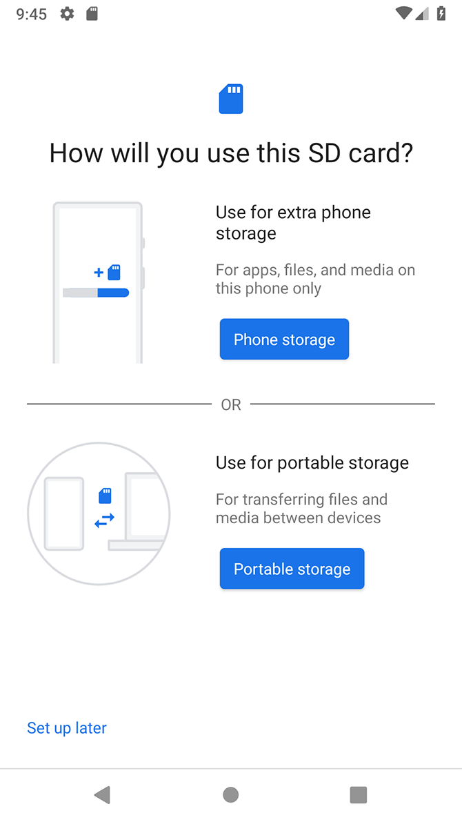 - Choose your SD card.Insert the card into your phone. When the New SD Card notification appears, tap Set Up. Next, you need to choose how your phone should use the card.