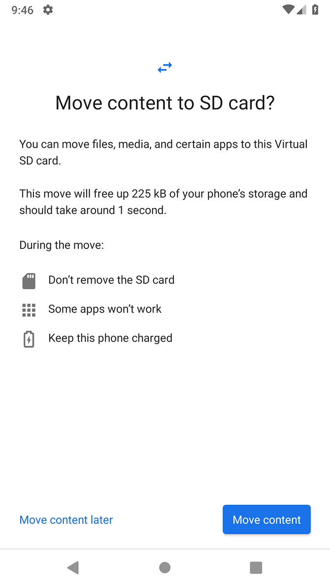 - Select Phone Storage on Android 9 to Android 12, or Use as Internal Storage on older versions.